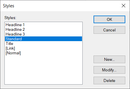 The style sheet "[Link]" is used for the formatting of links. The template "[Normal]" is of technical nature and can neither be edited nor deleted.
