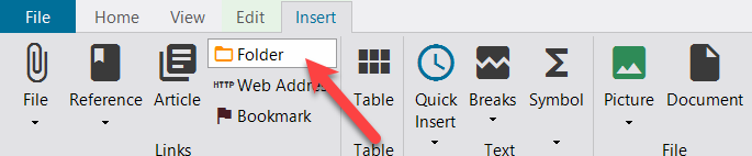Edit the article in question, place the cursor at the point in the article where the links are to be inserted or select the text passage that is to carry the link. Then click on "Folder" in the "Insert" function bar.