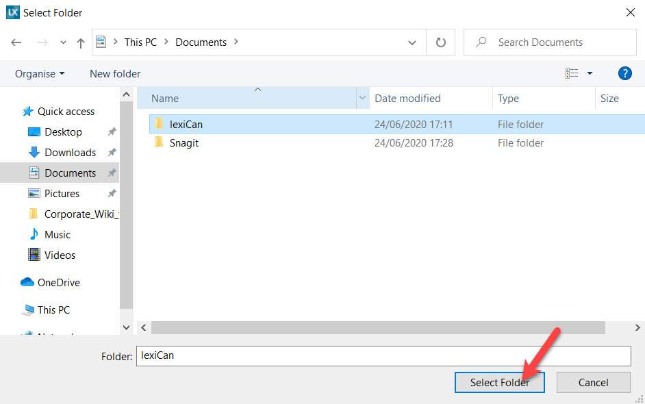 In the Windows file selection dialog box, navigate to the appropriate file folder, for example