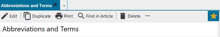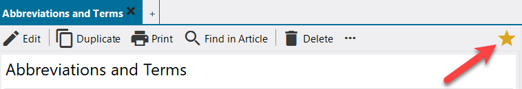 Marking or defining an article, file or reference as a favorite is very easy. Simply click on the star symbol in the toolbar of the tab in the relevant content, e.g.