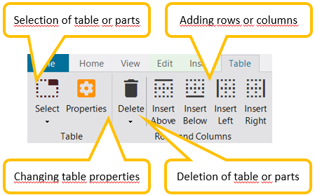The function bar "Table" is available only if the cursor is placed in a table or parts of a table are selected.