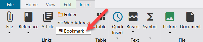 Before a link can be set to an exact passage within an article, this passage must first be defined and "marked". To do this, select the article with the (text) passage, put it in edit mode and place the cursor at the appropriate position. Then click on "Bookmark" in the "Insert" function bar.