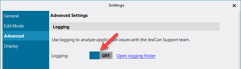 Here you can activate a logging of the program processes. This is deactivated by default. The activation can provide important information for the lexiCan support team in case of problems.
