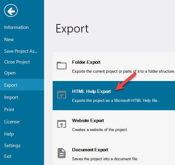 Exporting a project or parts of it to an HTML Help file
