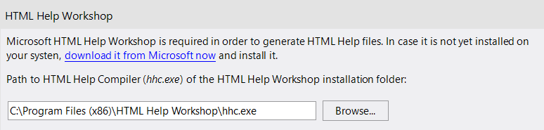 If the HTML Help Workshop (see above ) is not installed by default to C:\Program Files (x86), you must specify the exact program path in the following section.