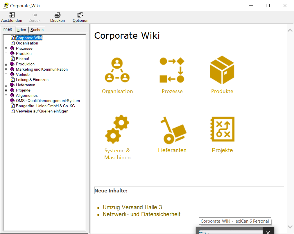 HTML Help is the format on which the help files of many Windows programs are based. It has become somewhat outdated, but is still appreciated by some users. With lexiCan you have the possibility to create a HTML Help file from any project. Unfortunately, this export variant cannot take into account the files contained in a project. The CHM file format does not allow this.