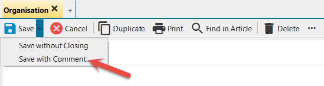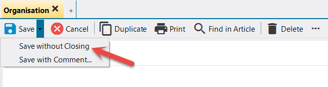 Click on "Save" in the toolbar of the article to save your changes/entries.